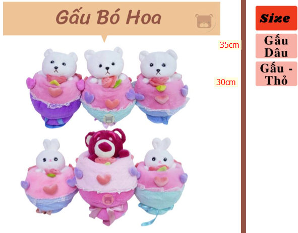 Hoa Thái- GB gấu bó hoa thỏ 30cm, gấu dâu 33cm